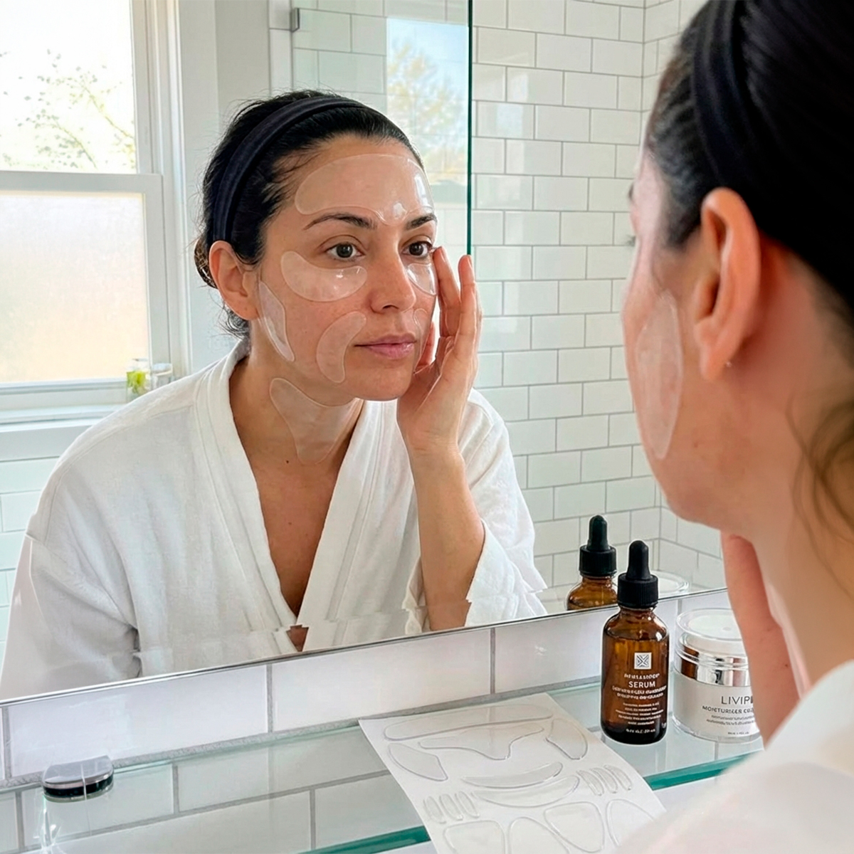 Diga adeus às linhas de expressão e rugas de sono! Essa tecnologia oferece um tratamento não invasivo que atua diretamente na hidratação e regeneração da pele enquanto você dorme ou relaxa. -Ao aplicar o adesivo, ele cria um microclima entre a pele e o silicone, o que estimula o fluxo sanguíneo e retém a umidade natural, forçando a pele a se manter esticada e hidratada. -Uma pele visivelmente mais lisa, macia e com rugas suavizadas já nas primeiras aplicações. -Hipoalergênico, macio e seguro para todos os tipos de pele. Especificações Técnicas: – Material: Adesivo – 16 adesivos – 1 para testa – 1 para zona T – 2 para a região periorbital – 8 para a região perional – 4 para o queixo – Reutilizável Itens Inclusos: – 16x Adesivos