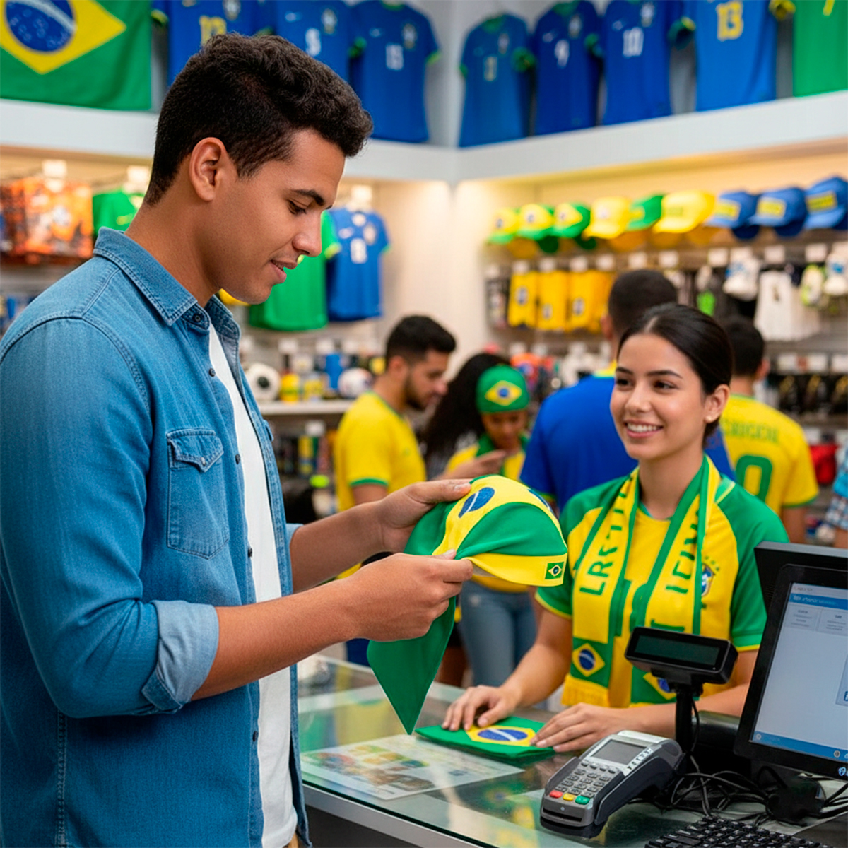 Prepare o grito de gol com o acessório que é a cara da nossa torcida! Desenvolvida para quem não abre mão de estilo e conforto na hora de apoiar a nossa seleção. -Ideal para complementar o seu visual na hora de torcer. -Seja no estádio, na fan fest ou no churrasco com os amigos, este acessório versátil garante que você esteja devidamente trajado com as cores da nossa bandeira. -Tecido leve e macio que absorve o suor, mantendo você fresco mesmo nos momentos mais tensos da partida. Especificações Técnicas: – Material: Poliéster – Cor: Verde com amarelo – Dimensões Aprox.: 7cm (COMPRIMENTO) x 29cm (LARGURA) Itens Inclusos: – 01x Bandana