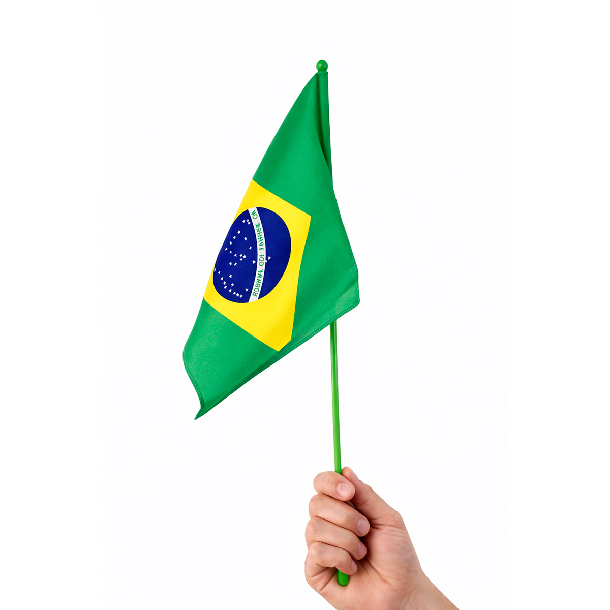 Torça com garra e mostre o seu orgulho verde e amarelo! Oacessório indispensável para acompanhar os jogos da seleção, festas temáticas, desfiles cívicos ou eventos escolares. -Diferente das bandeiras simples, este modelo é dupla face, o que garante que o brasão e as cores fiquem perfeitos de ambos os lados. -Fabricada em tecido leve e resistente, ela tremula com facilidade, proporcionando um efeito visual incrível durante a comemoração. -Acompanha haste (mastro) de plástico leve e resistente, com ponteira dourada para um acabamento elegante. Especificações Técnicas: – Dimensões Aprox.: 30cm (CABO) x 21cm (COMPRIMENTO) x 14cm (LARGURA) – Material: Poliéster Itens Inclusos: – 01x Bandeira