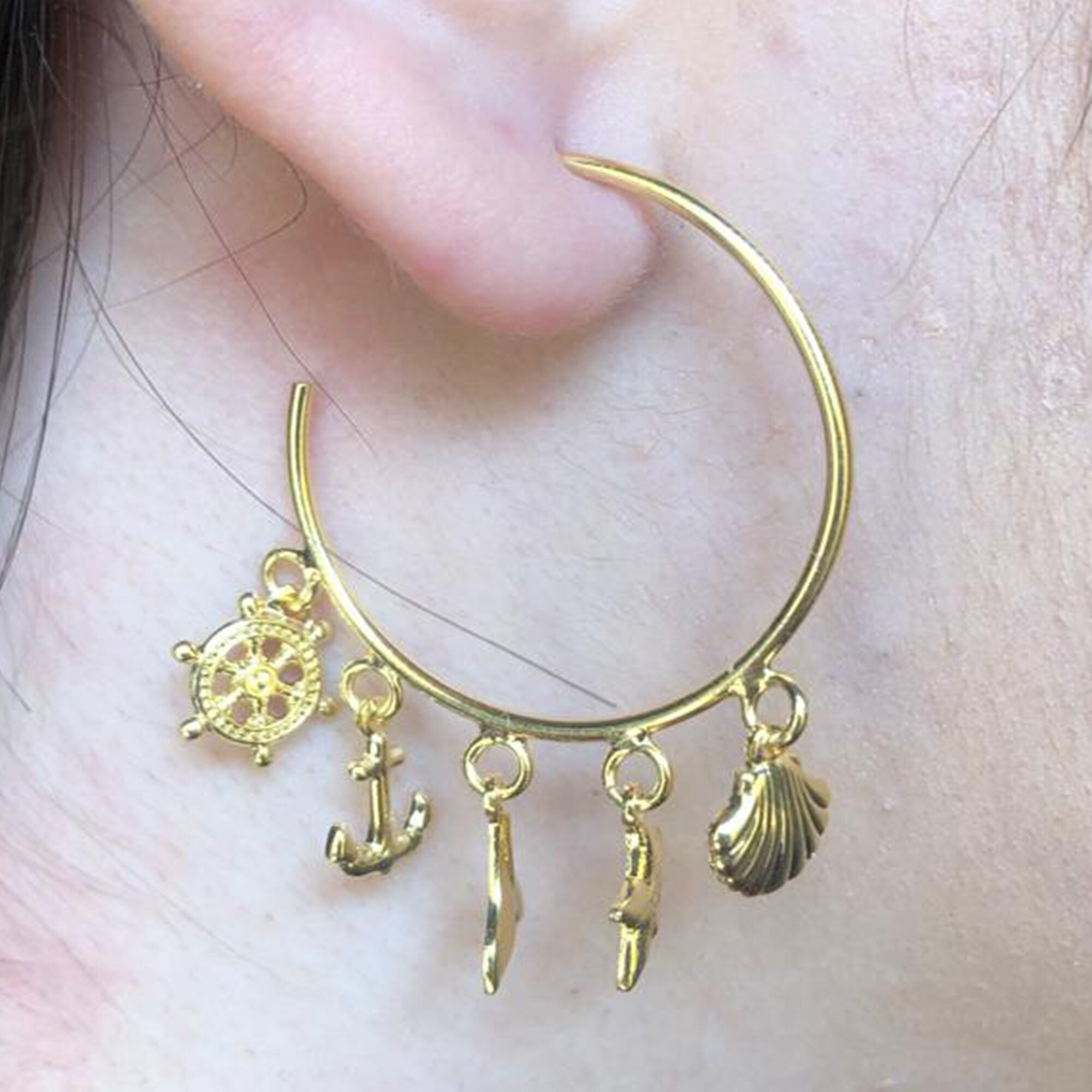 Esse modelinho de Brinco Médio com Argola e Pingente Marinho é inteiramente maravilhoso.