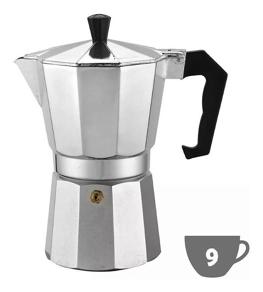 Cafeteira Italiana Em Alumínio Para 9 Xícaras Especificações/Características do produto: – Alumínio Polido De Excelente Qualidade – Válvula De Proteção – Completamente Desmontável Para Limpeza – Produto Altamente Resistente E Durável – Cor: Prata – Capacidade: 400 ml