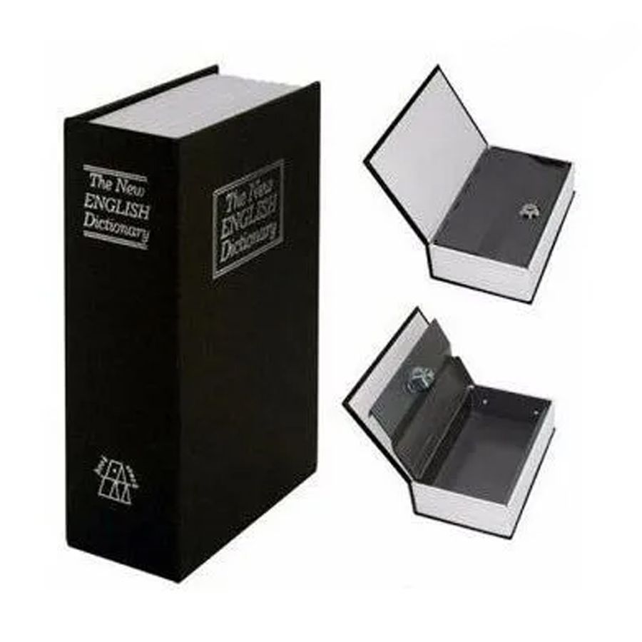 Cofre Livro Dicionário Inglês Dinheiro Camuflado Descrição Cofre Camuflado Pequeno em formato de Livro The New English Dictionary. Discreto cofre em formato de livro, ótimo para guardar dinheiro, jóias, passaporte, documentos importantes, cartões, fotos etc. Fabricado em metal, porém revestido com uma capa idêntica às capas de livros convencionais. Visto por fora, o cofre é exatamente como um livro comum, um Dicionário de Inglês, por dentro possui um mecanismo de cofre com chave. Pode ser levado para transportar coisas de valor sem levantar suspeitas, certamente passará desapercebido. Uma forma discreta e segura de guardar ou transportar seus bens de valor. Especificações/Características do Produto – Material: Metal – Cor: Preta, azul marinho, vermelha e marrom (envio aleatório conforme disponibilidade em estoque) – Acompanha duas Chaves – Medidas: 18,2 x 11,5 x 5,5 cm Item Incluso: – 1 Cofre Livro