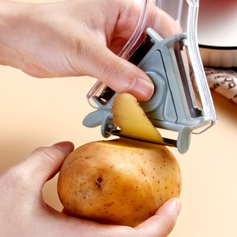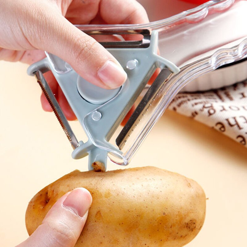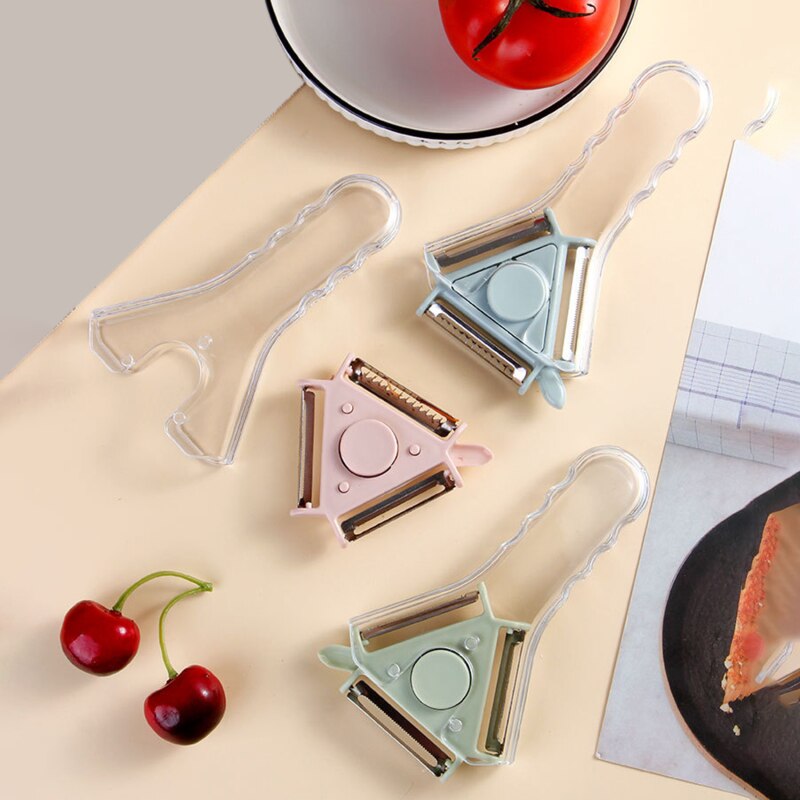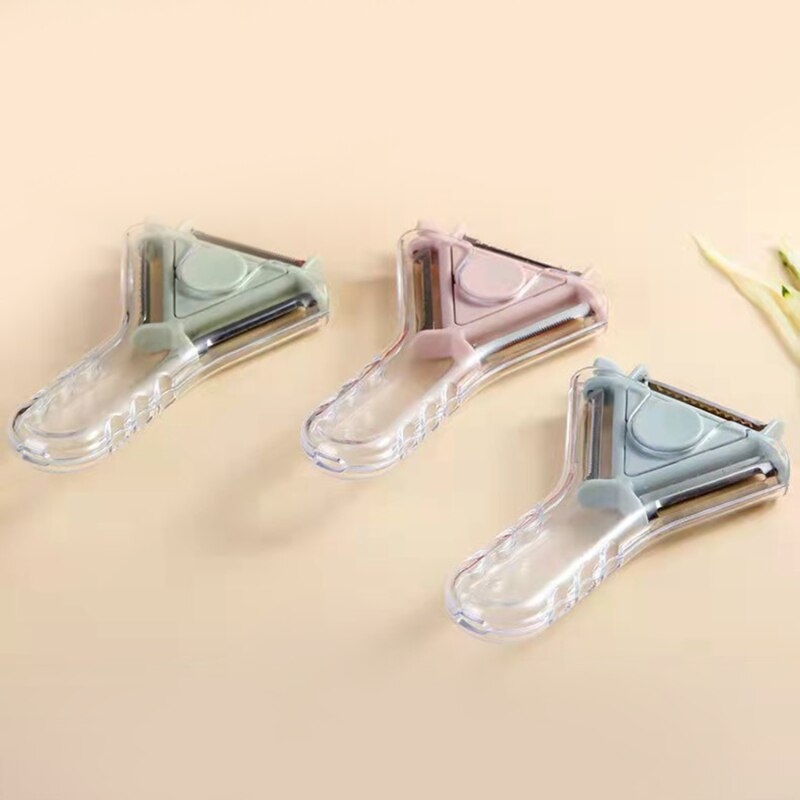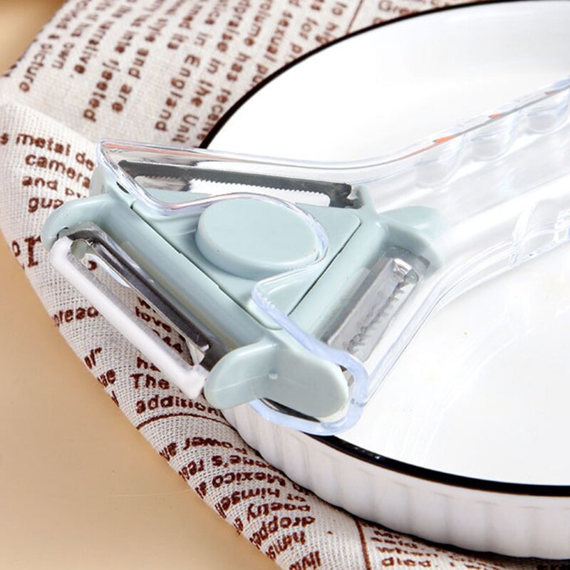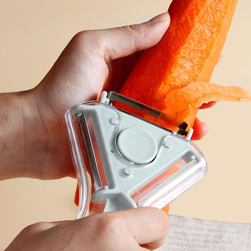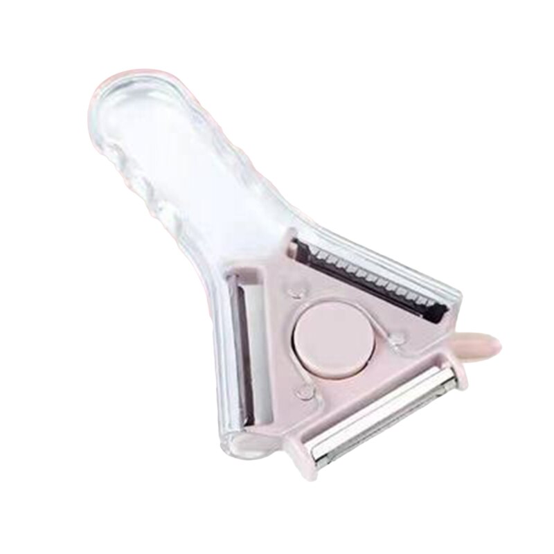 Descascador Giratório Multifuncional Descascador 3 Em 1 Descrição: – Esse descascador elimina a necessidade de utilizar vários descascadores, ao preparar diferentes tipos de frutas e vegetais. – Fácil de utilizar, basta carregar no botão central, encaixar a lâmina pretendida e descascar os alimentos. – Esse Descascador inclui 3 lâminas de aço inoxidável, para escolher entre corte padrão, corte juliana e corte serrilhado. Especificação: Cor: Envio Aleatório Material: Aço inoxidável + ABS Medidas Aproximadas: A 15cm x L 9cm x C 2cm Peso: 66 Gramas Pacote Inclui: 1 * Descascador Multifuncional
