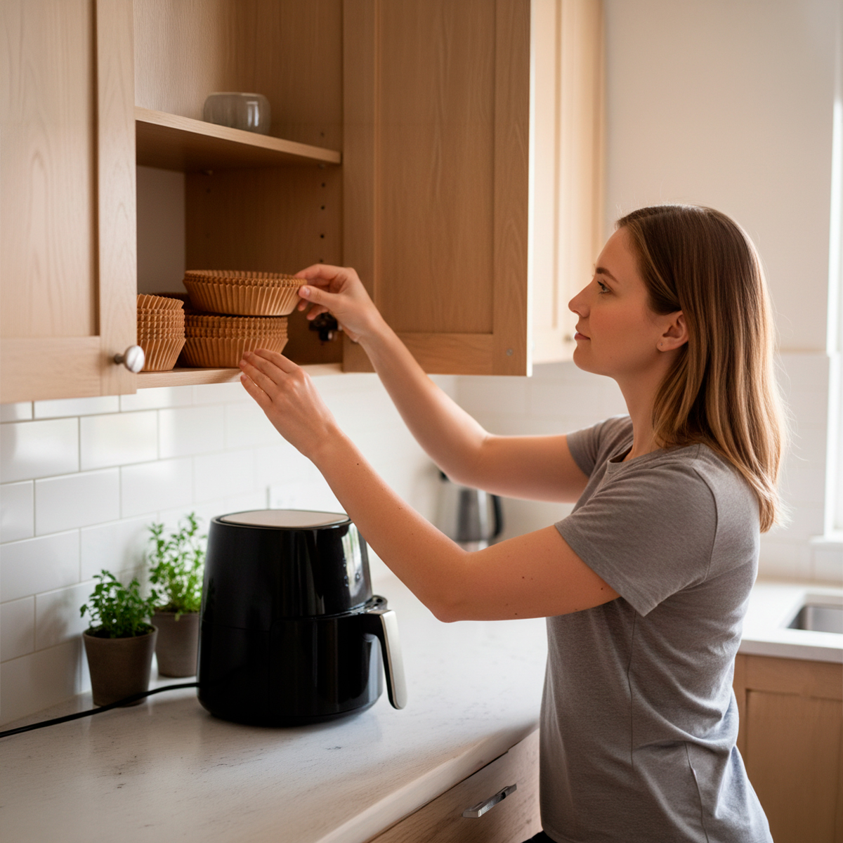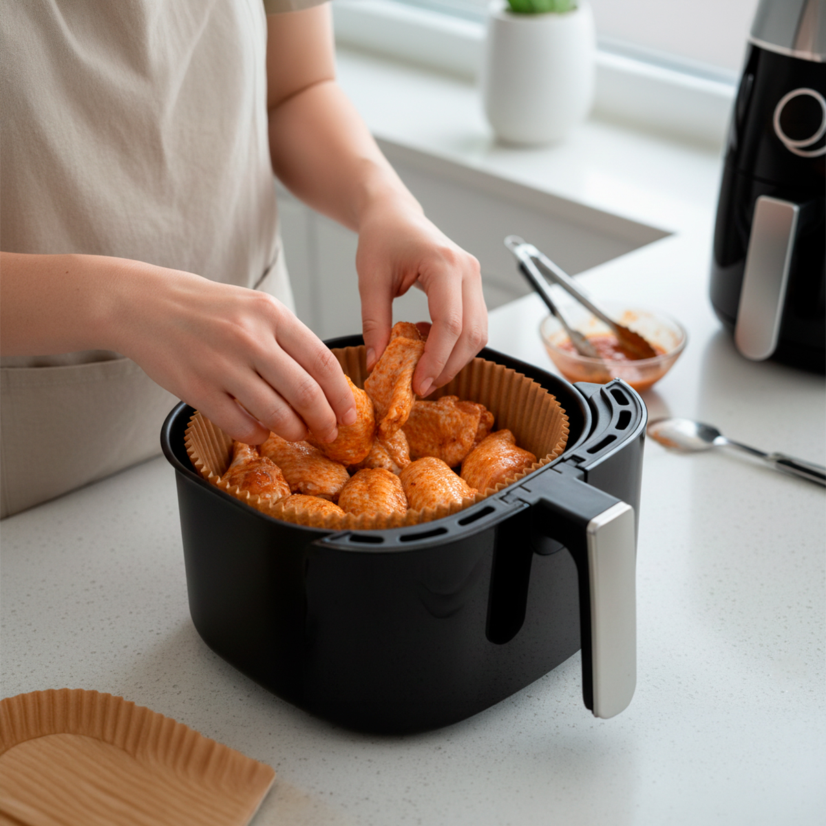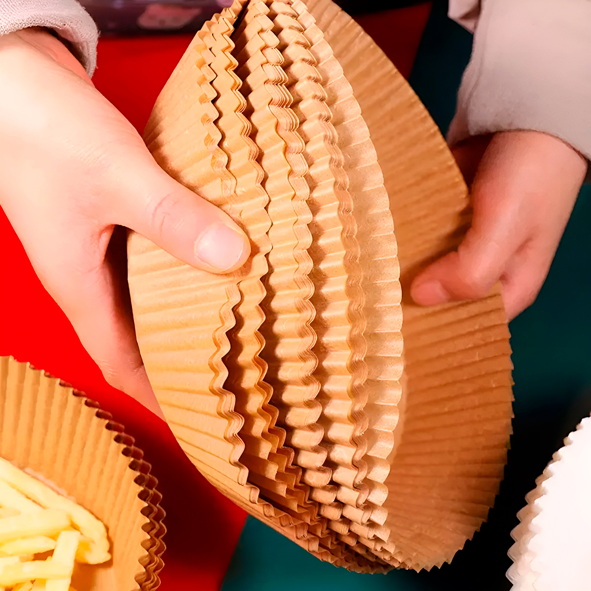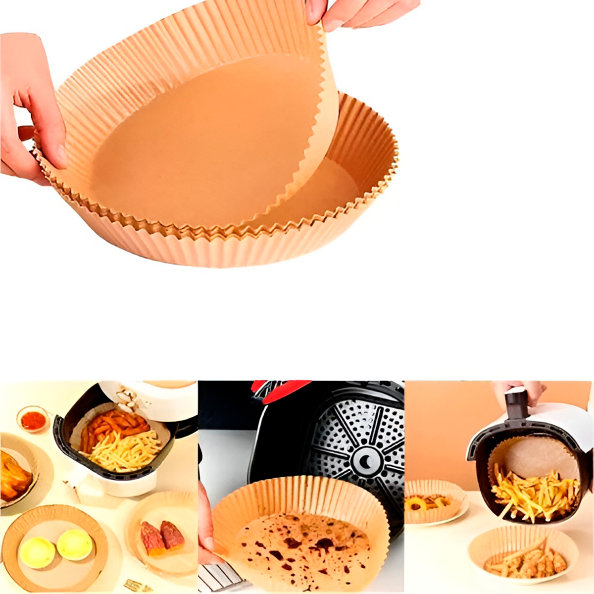 Cansado de ter que esfregar sua Air Fryer toda vez que prepara uma refeição? Esse forro é a solução definitiva para manter sua fritadeira elétrica sempre limpa e pronta para o próximo uso! -Com tecnologia antiaderente e resistente a altas temperaturas. – Esses forros em formato de forma protegem o cesto da gordura e dos resíduos de alimentos, sem interferir no fluxo de ar e no cozimento perfeito das suas receitas. -Papel de qualidade alimentícia, biodegradável e resistente ao calor. Especificações Técnicas: – Material: Papel – Dimensões Aprox.: 16cm (DIÂMETRO) x 4,5cm (ALTURA) – Suporta até 220° – 50 unidades – Cor: Marrom Itens Inclusos: – 50x Formas