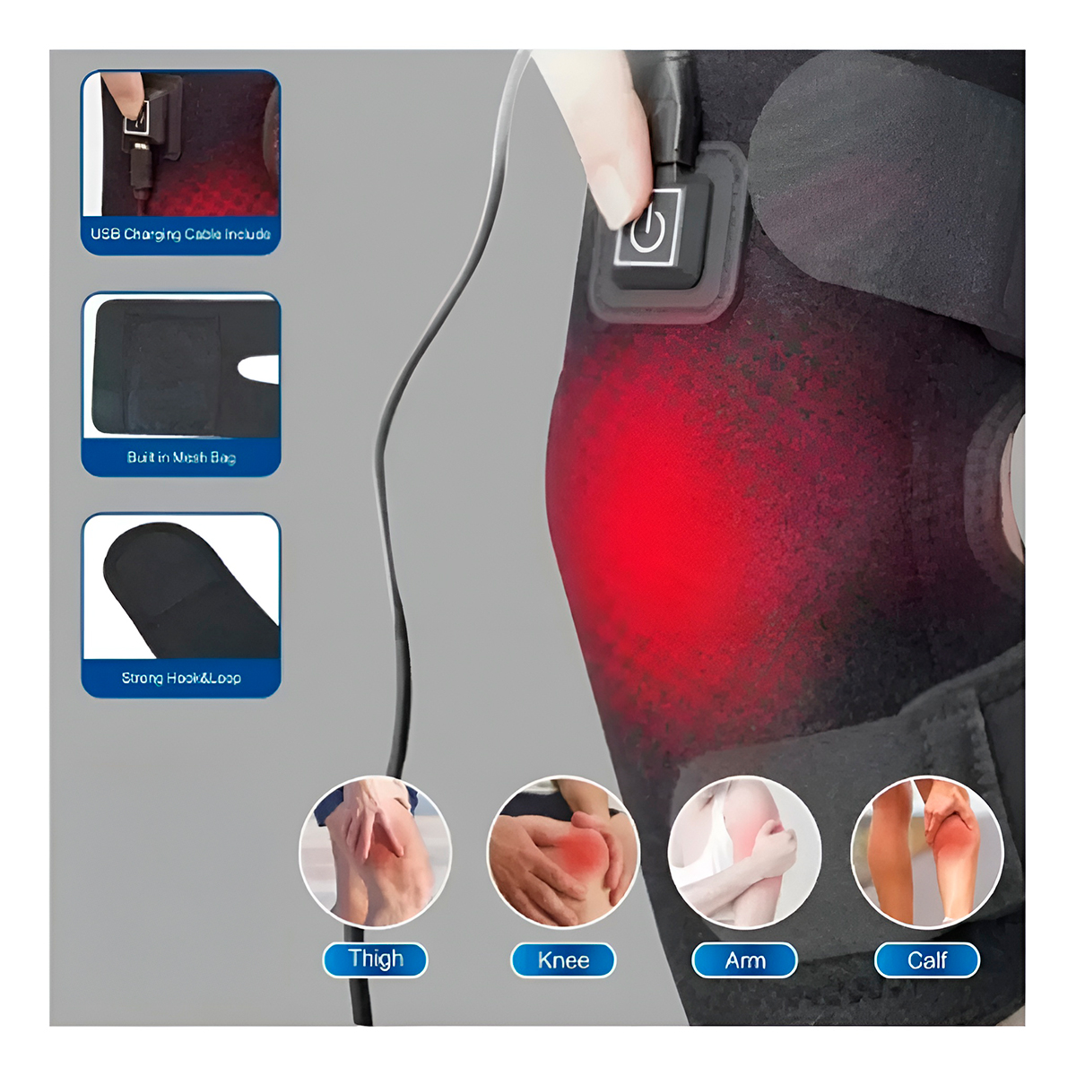 Diga adeus às dores no joelho e redescubra o conforto no movimento! Asolução completa e não invasiva para quem sofre com dores crônicas, artrite, rigidez, lesões esportivas ou simplesmente busca relaxamento muscular profundo. – Alivia a dor, diminui a rigidez e relaxa o músculo. -Os motores de vibração integrados atuam sobre os pontos de tensão, ajudando a liberar nós musculares, reduzir o inchaço e proporcionar um alívio imediato e agradável. -Tiras de velcro totalmente ajustáveis garantem que a joelheira permaneça firme e confortável em qualquer tamanho. Especificações Técnicas: – Material: Neoprene/Componentes elétricos – Dimensões (ABERTO): 52cm (COMPRIMENTO) x 21,5cm (LARGURA) – Cor: Preto – 3 temperaturas (45°, 55° e 65°) – Tensão: 8,5V – Almentação: USB – Bateria: 500mAh Itens Inclusos: – 01x Joelheira – 01x Cabo USB