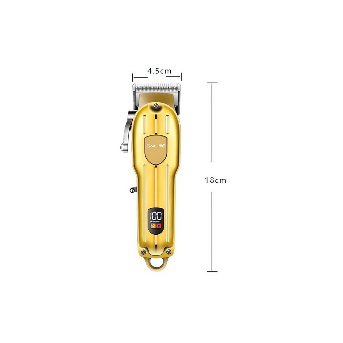 Transforme seu visual com a nossa Máquina de Cortar Cabelo e Aparar Barba Profissional, desenvolvida para oferecer cortes precisos e uniformes, seja para uso em salões ou no conforto de sua casa. Com design ergonômico e lâminas de aço inoxidável de alta qualidade, ela oferece um corte impecável e duradouro. -Versátil: Ideal para cortar cabelo, aparar barba e fazer acabamentos. -Diversos pentes guias: Permitindo ajustar o comprimento do corte de acordo com sua preferência. -Lâminas de aço inoxidável: Garantem um corte preciso e uniforme, sem puxar os pelos. -Qualidade profissional. -Fácil de Limpar e Manter:Componentes removíveis e laváveis facilitam a higienização, garantindo uma manutenção simples e prolongando a vida útil do equipamento. -Seu formato ergonômico proporciona um manuseio confortável e seguro, reduzindo a fadiga durante o uso contínuo, ideal para profissionais que passam horas realizando cortes. Especificações Técnicas: – Modelo: Máquina de Cortar Cabelo Profissional – Material: Plástico/Componentes Elétricos/Aço Inoxidável – Fonte de Alimentação: USB – Tempo de Carregamento: 3 Horas – Ajustes de Comprimento: 5 ajustes – Bateria: Lítio de 2600mAh – Faixa de Corte: 0,5mm a 12mm – Potência: 3W – Cor: Dourado – Dimensões Aprox.: 18cm (ALTURA) x 4,5cm (LARGURA) – Tempo de Uso: 180min Itens Inclusos: – 01x Máquina de Cortar Cabelo – 04x Pentes – 01x Escova de Limpeza – 01x Cabo de Carregamento – 01x Óleo Lubrificante