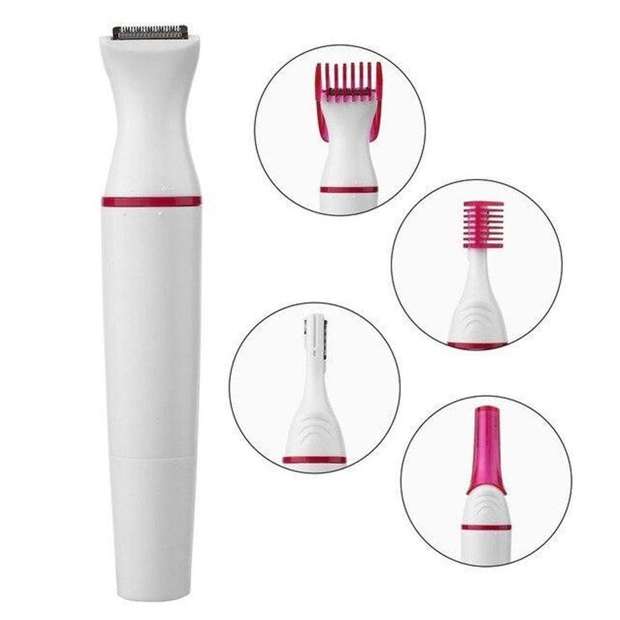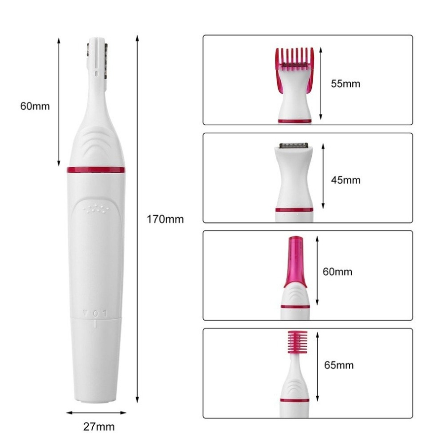 MINI DEPILADOR ELÉTRICO PORTÁTIL- Mini Depilador Elétrico Portátil Depilação Feminina 4 em 1- O Aparador permite uma maneira simples e sem dor para aparar pelos no corpo.- Existem 4 aparadores removíveis que permitem aparar os pelos de diversas partes do seu corpo, incluindo coxas, axilas, costas, peito, sobrancelhas, pelo do do nariz e orelha, e área do biquíni.- Um aparelho com 5 funções. – Lâmina lavável, fácil de limpar.- Necessita de uma pilha AA (não inclusa)- Cor: Rosa Itens Inclusos:- 1 aparelho aparador de pelos- 4 cabeças removíveis de cortes diferentes