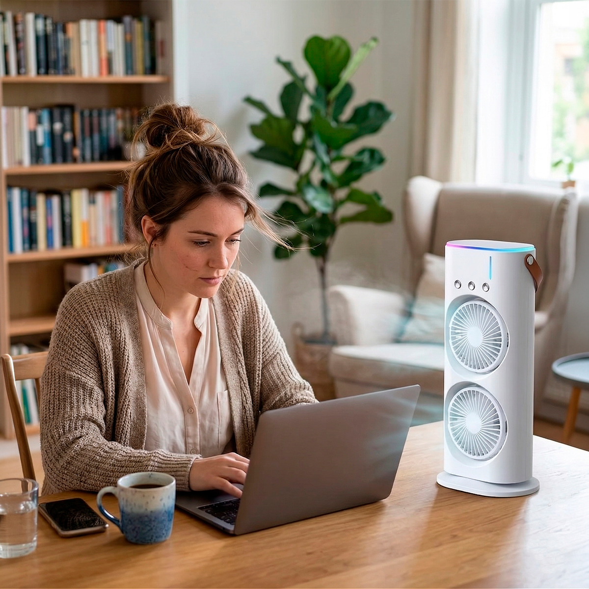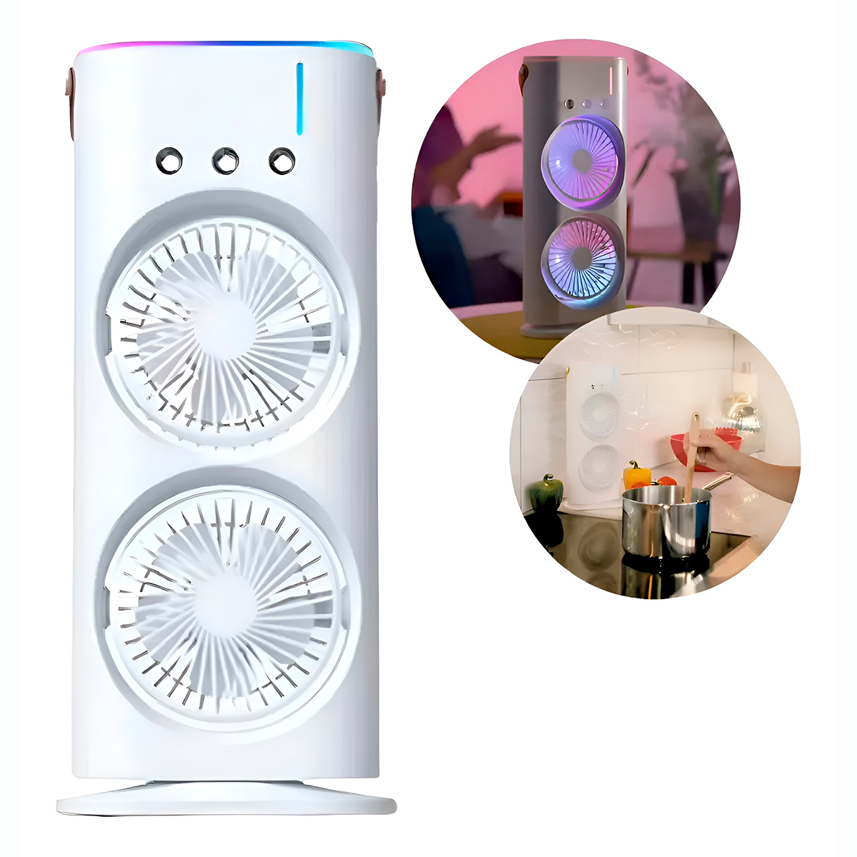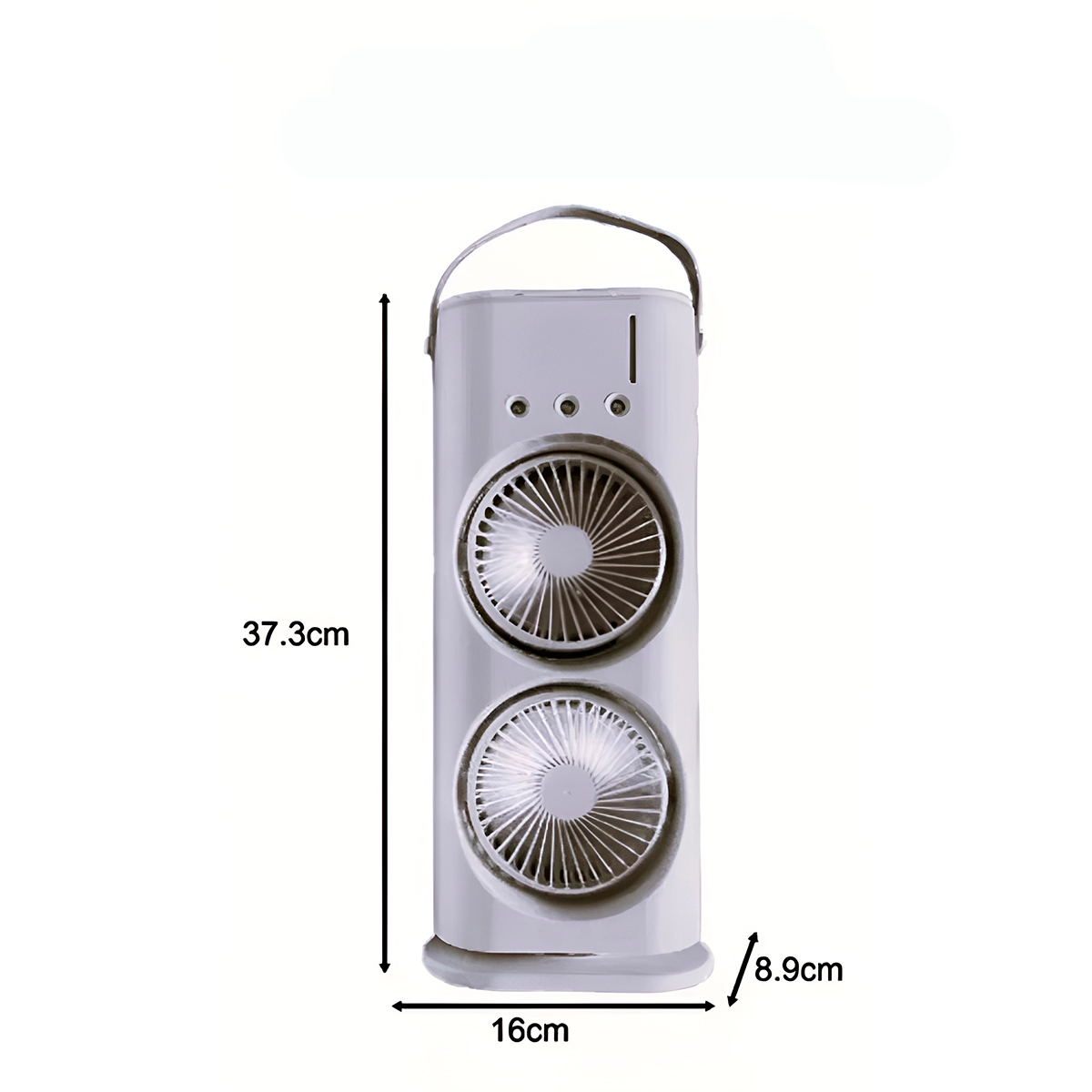 Cansado de passar calor no trabalho ou enquanto estuda? O Mini Climatizador Duplo de Mesa é a solução definitiva para quem busca um ambiente fresco, umidificado e agradável, sem ocupar espaço e com o máximo de silêncio. -Dois compartimentos de ventilação que trabalham juntos para um resfriamento mais rápido. -Para um efeito “geladinho”, basta adicionar água gelada ou pedras de gelo no compartimento superior. -Ideal para usar durante o sono, no escritório ou em momentos de leitura e concentração. Especificações Técnicas: – Material: ABS/Componentes elétricos – Dimensões Aprox.: 37,3cm (ALTURA) x 16cm (LARGURA) x 8,9cm (PROFUNDIDADE) – Cor: Branco – 3 velocidades – Potência: 10W – 2 hélices – Tensão: 5V 2A – Capacidade: 600ml – Ruido: 50dB Itens Inclusos: – 01x Mini climatizador – 01x Cabo USB – 01x Manual