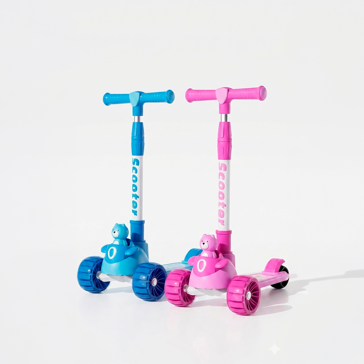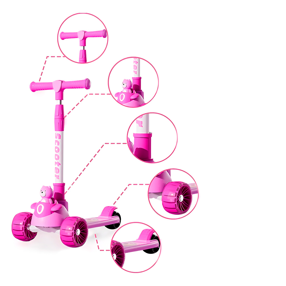 Proporcione momentos inesquecíveis de lazer para o seu pequeno! Com um ursinho e cores vibrantes, ele é o companheiro ideal para desenvolver o equilíbrio e a coordenação motora de forma segura e muito divertida! -O sistema de 3 rodas garante que a criança tenha mais equilíbrio, evitando quedas comuns em patinetes de duas rodas. -Base antiderrapante larga para os pés e freio traseiro de fácil acionamento. -Fácil de transportar para parques, condomínios ou viagens. Especificações Técnicas: – Material: ABS/Borracha – Dimensões Aprox.: 57cm (COMPRIMENTO) x 21cm (LARGURA) x 67cm – 81,3cm (GUIDÃO) – Peso suportado: 60kg – Idade recomendada: +06 anos – Luz LED nas rodinhas – Fonte de energia: Pilha AAA (NÃO INCLUSAS) Itens Inclusos: – 01x Patinete