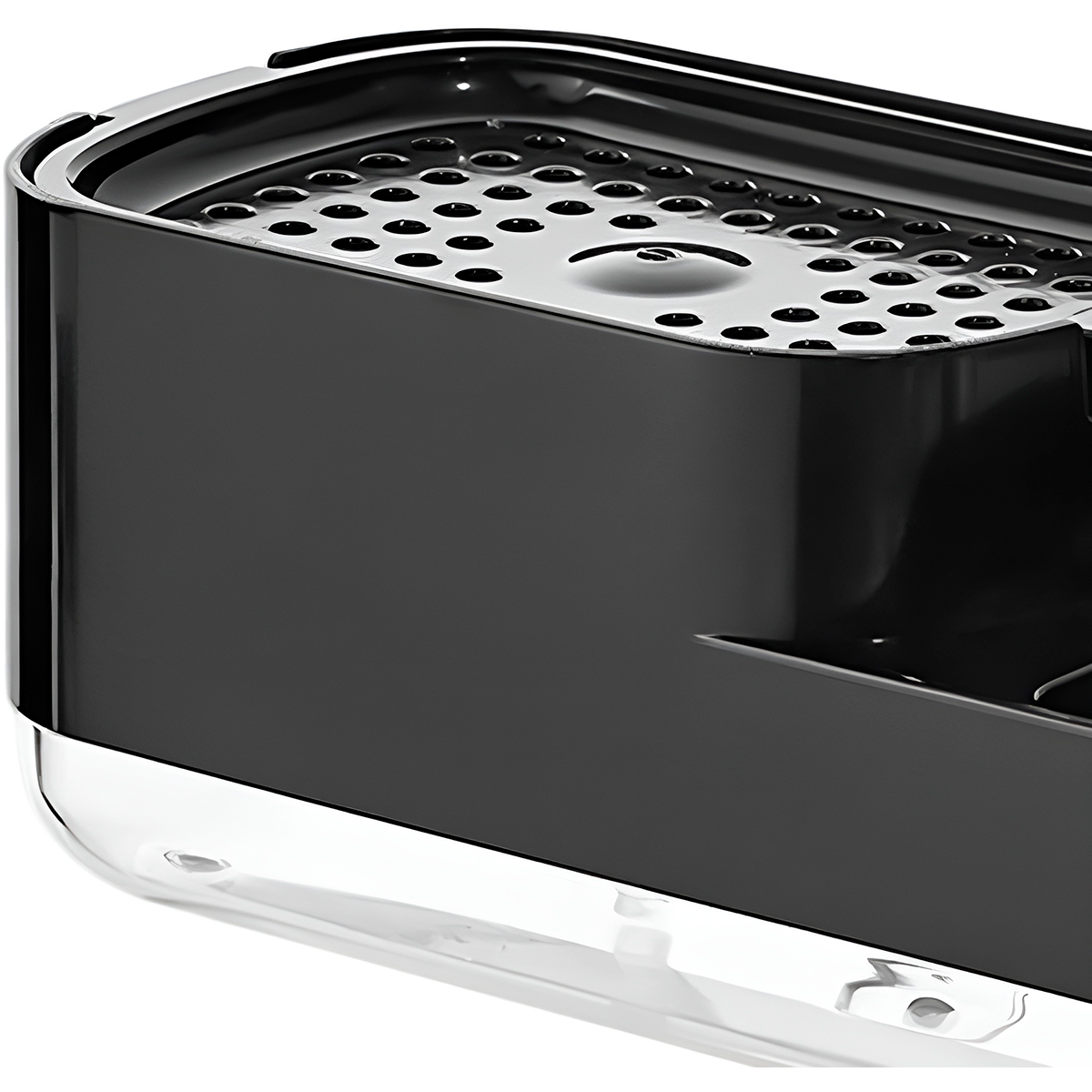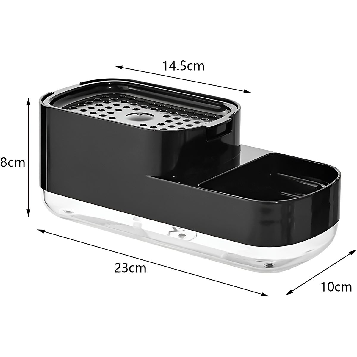 Diga adeus à bagunça na pia da sua cozinha! Desenvolvido para facilitar a sua rotina, mantendo os itens essenciais sempre à mão e o ambiente mais limpo e organizado. -Mantenha seu detergente e esponja sempre no lugar certo, evitando bagunça e facilitando a limpeza. -O suporte para esponja permite uma melhor ventilação, ajudando na secagem rápida e prevenindo a proliferação de bactérias. -O dispenser de detergente libera a quantidade ideal de produto com apenas um toque, evitando desperdícios e facilitando a lavagem da louça. -Com design elegante e compacto, o porta detergente dispenser se adapta a qualquer estilo de cozinha. -O porta detergente dispenser é fácil de limpar, podendo ser lavado com água e sabão neutro. -Ideal para cozinhas residenciais, comerciais e até áreas de serviço, agregando funcionalidade a qualquer espaço. Especificações Técnicas: – Modelo: Dispenser Porta Detergente 2 em 1. – Dimensões Aprox.: 10cm (LARGURA) x 8cm (ALTURA) x 23cm (COMPRIMENTO) – Material: Plástico – Capacidade: 385ml – Cor: Preto Itens Inclusos: – 01x Porta Detergente