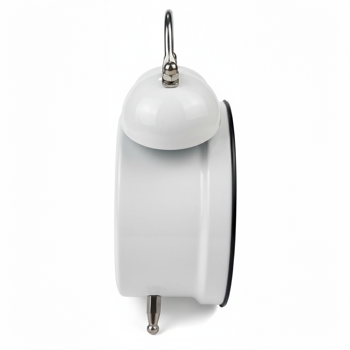Dê um toque de charme clássico à sua cabeceira ou escritório! Com um design icônico que remete aos modelos antigos, este relógio é fabricado em metal de alta resistência, unindo a durabilidade do passado com a precisão do presente. -Diferente dos despertadores digitais, este modelo possui um martelo mecânico que bate nos sinos de metal, produzindo um som alto e cristalino. -Possui um pequeno botão na parte traseira que ilumina o visor suavemente para conferir a hora no escuro. – Asolução definitiva para quem tem dificuldades para acordar ou quer manter o celular longe da cama. Especificações Técnicas: – Material: Metal/Componentes elétricos/Vidro – Dimensões Aprox.: 11,5cm (ALTURA) x 8cm (LARGURA – Cor: Branco – Tipo de Alimentação: 1 pilha AA (NÃO INCLUSA) – Estilo Retrô – Com botão para ativar o LED – Com função alarme Itens Inclusos: – 01x Relógio