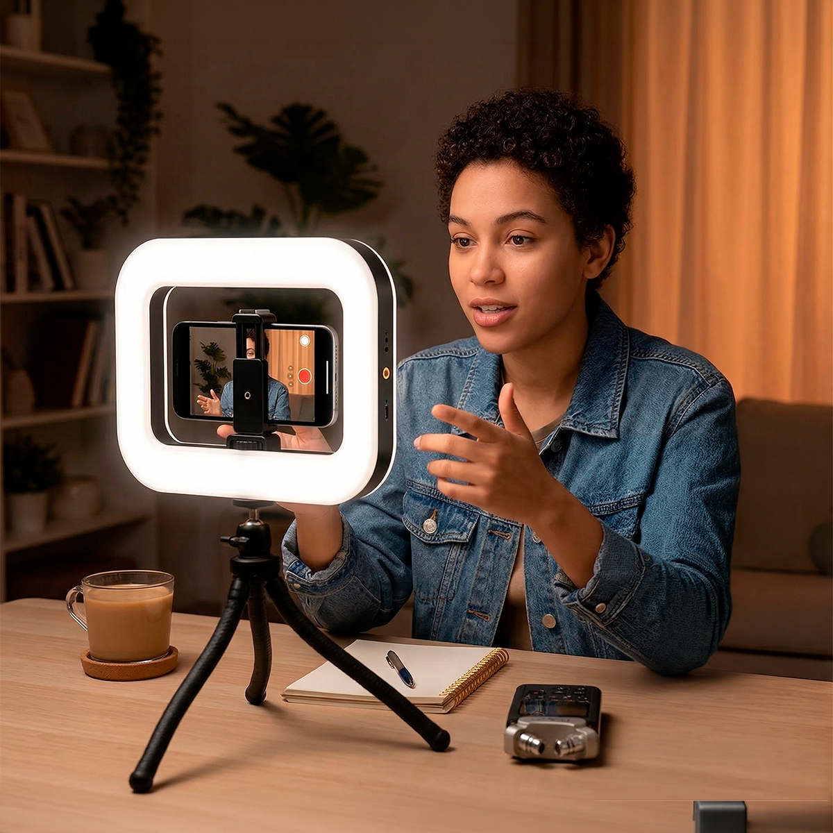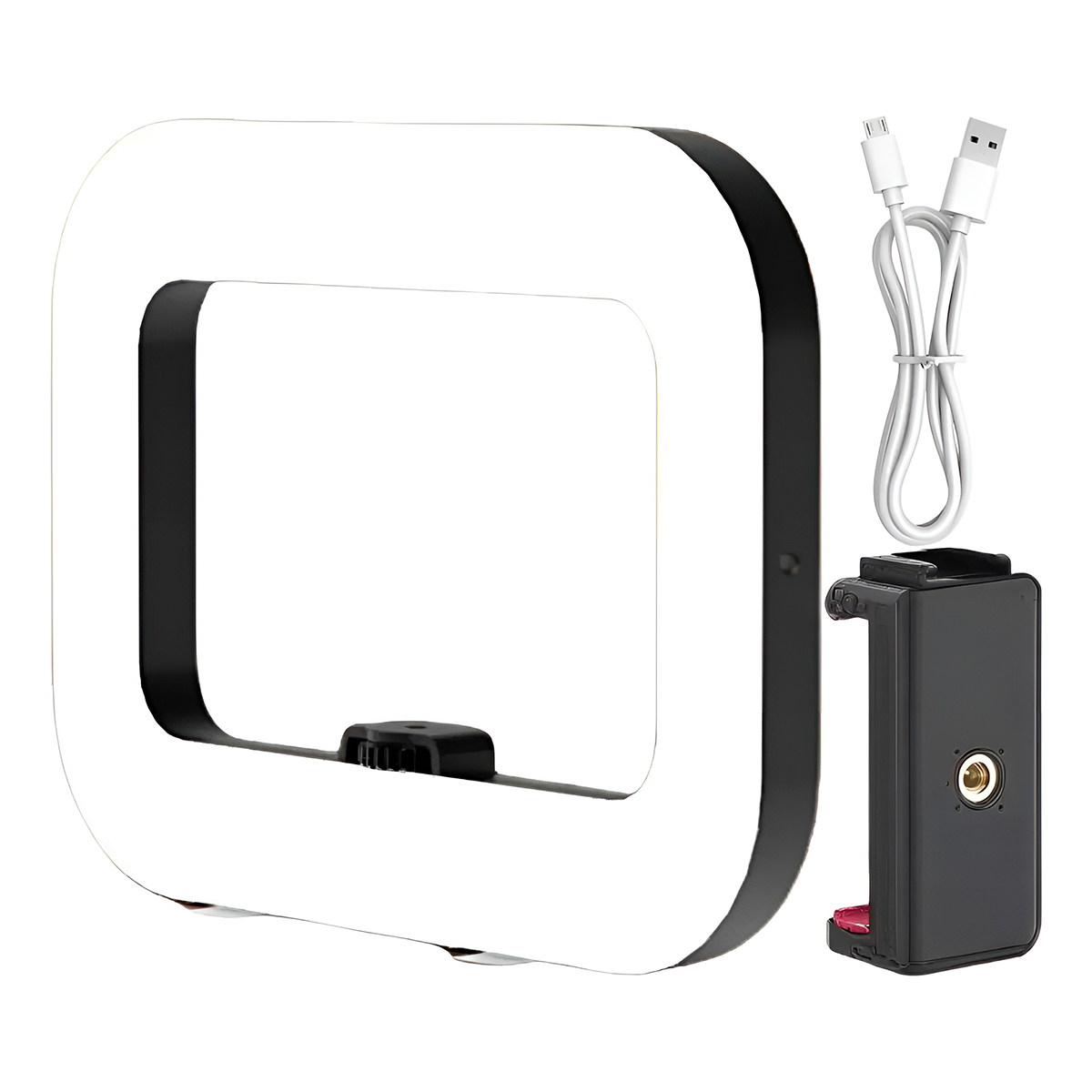 Eleve o nível das suas produções! Se você é criador de conteúdo, maquiador, fotógrafo ou apenas quer melhorar a qualidade das suas videochamadas, este Ring Light Retangular é a ferramenta definitiva. -Combinando uma iluminação potente com um design ergonômico que serve como suporte estabilizador, ele garante vídeos estáveis e fotos com luz de estúdio em qualquer lugar. -Proporciona uma distribuição de luz mais ampla e uniforme, ideal para preencher o rosto e o cenário sem sombras duras. -Pode ser usado na mão ou acoplado a tripés padrão. Especifcações Técnicas: – Material: ABS/Componentes elétricos – Dimensões Aprox.: 28cm (LARGURA) x 4cm (ESPESSURA) x 22cm (ALTURA) – Luz quente: 2500K – Luz fria: 8500K – Fonte de energia: USB 5V / 2A – LEDs: 200 – Potência: 20W – Luz ajustável Itens Inclusos: – 01x Ring Light – 01x Suporte – 01x Cabo USB