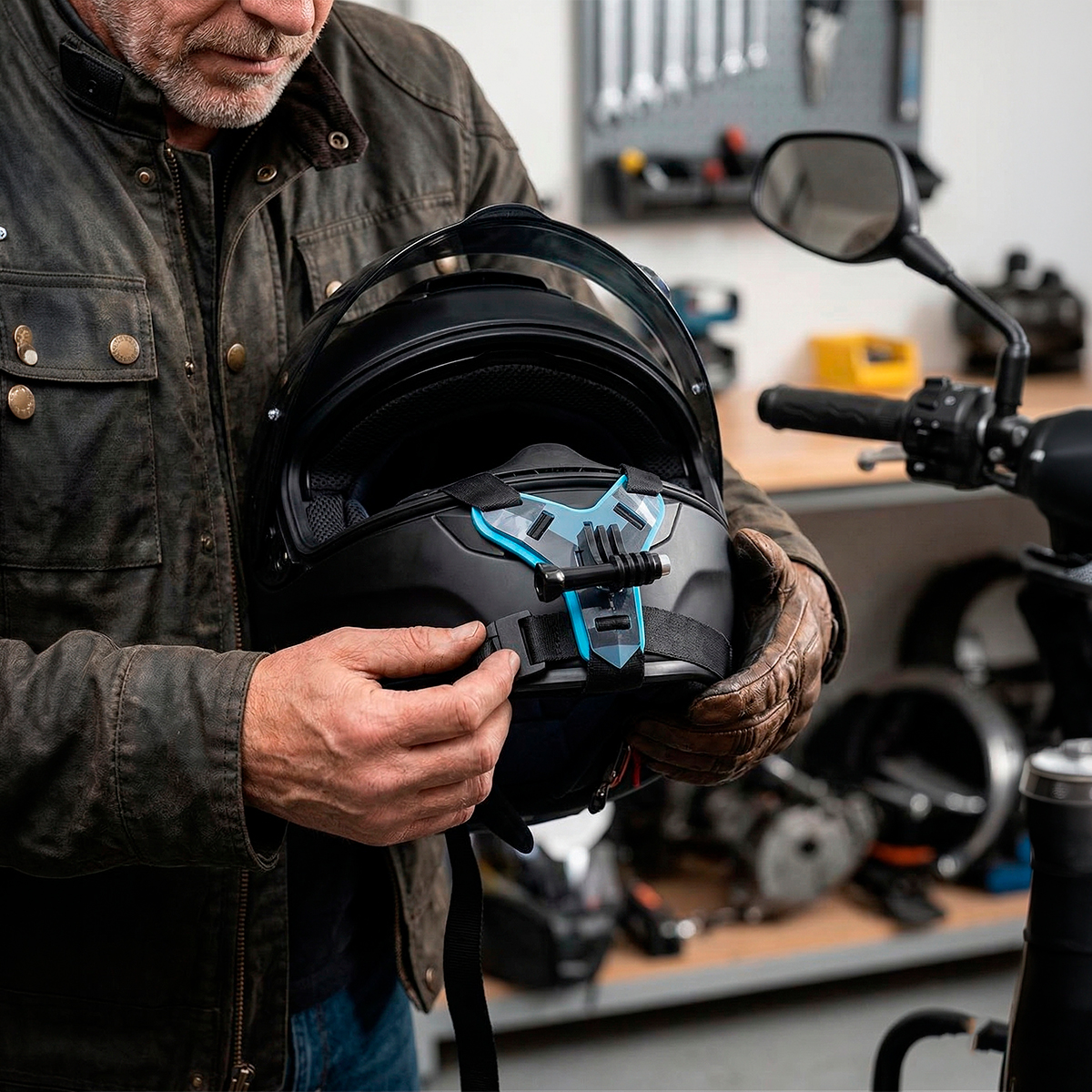 Se você busca o melhor ângulo para seus motovlogs ou vídeos de trilha, o Suporte de Queixo é o acessório indispensável. Diferente dos suportes de topo ou laterais, o posicionamento no queixo oferece a perspectiva POV mais realista, simulando exatamente o que os seus olhos estão vendo. -Posicionamento estratégico que captura tanto a estrada quanto o painel da moto/guidão da bike, garantindo vídeos muito mais dinâmicos. -Design em peça única com base emborrachada antiderrapante, que reduz vibrações e evita que o suporte deslize ou risque o capacete. -Sistema de tiras de poliéster de alta resistência que se adapta a quase qualquer capacete. Especificações Técnicas: – Material: ABS/Silicone/Nylon – Dimensões Aprox.: 10cm x 9cm x 10cm – Ângulo de rotação: 90 – Cor: Preto com azul – Fixação: Fivela Itens Inclusos: – 01x Suporte – 01x Kit de instalação