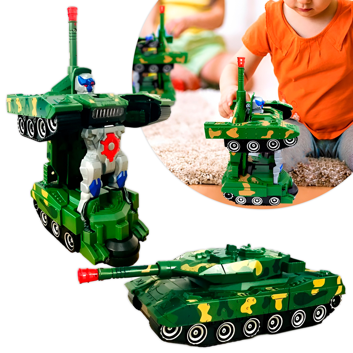 Explosão de diversão! Tanque de Combate que se transforma em Robô com Luzes, Sons e Ação! Liberte o soldado que há dentro de você com o incrível Tanque de Combate Transformável! – Design atraente e colorido que conquista crianças de todas as idades. – Estimula a coordenação motora, a imaginação e o raciocínio lógico. – Perfeito para brincadeiras solo ou em grupo, dentro ou fora de casa. – Introduz conceitos de transformação e movimento de forma divertida. – Sinta-se no meio da ação com luzes piscantes e sons de batalha autênticos. Garanta já e prepare-se para seu filho viver aventuras épicas! Especificacações Técnicas: – Modelo: Tanque de Combate Robô 2 Em 1. – Material: Plástico, Componentes Elétricos – Necessita de 3 pilhas AA 1,5 V (NÃO INCLUSAS) – Dimensões aprx.: 22cm x 9cm x 14cm Itens Inclusos na Embalagem: 01x Carrinho Tanque Robô 2 em 1