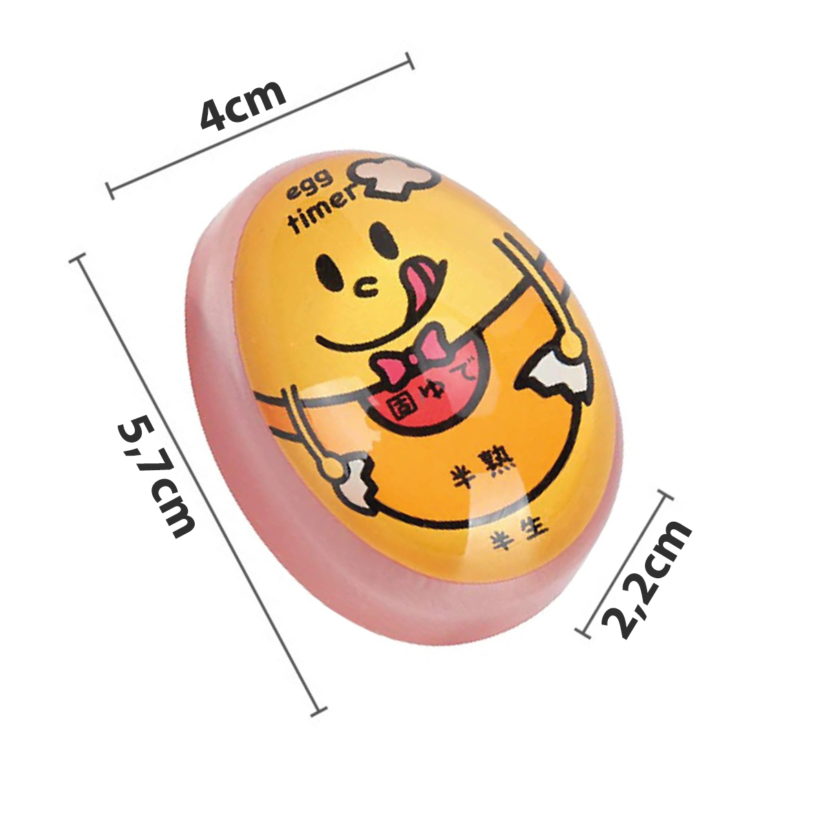 Cozinhe seus ovos no ponto certo sempre! Temporizador Termômetro para Ovos Perfeito! Com nosso temporizador termômetro para ovos, você terá ovos cozidos exatamente como você gosta, sem mistérios! Por que escolher nosso produto? – Prático e fácil de usar: Basta colocar o timer na panela junto com os ovos e pronto! A cor muda indicando o ponto ideal: mole, médio ou duro. – Material de alta qualidade: Feito com resina culinária não tóxica, seguro para entrar em contato com alimentos. – Design compacto e colorido: Se encaixa perfeitamente em qualquer cozinha e disponível em diversas cores divertidas. – Cozimento preciso: Não mais ovos passados ou muito moles. Com nosso timer, você controla o ponto exato do seu ovo. – Perfeito para toda a família: Ideal para quem gosta de ovos cozidos de diferentes maneiras. Como funciona: 1. Coloque o timer na panela junto com os ovos. 2. Conforme a água esquenta, a cor do timer muda indicando o ponto desejado do ovo. 3. Retire os ovos da água quando a cor atingir o ponto desejado. Benefícios: – Economiza tempo e evita desperdício de alimentos. – Garante um café da manhã delicioso e nutritivo. – Presente perfeito para amantes de ovos e cozinheiros iniciantes. – Fácil de limpar e guardar. Não perca mais tempo e prepare ovos perfeitos todos os dias! Seu café da manhã nunca mais será o mesmo! Especificações Técnicas: – Modelo:Temporizador Ovo Cozido – Material: Resina culinária não tóxica – Escala de graduação: Mole, Médio e Duro – Dimensões Aprox.: 5,7cm X 4cm X 2,2cm Itens Inclusos na Embalagem: – 01x Temporizador Ovo Cozido