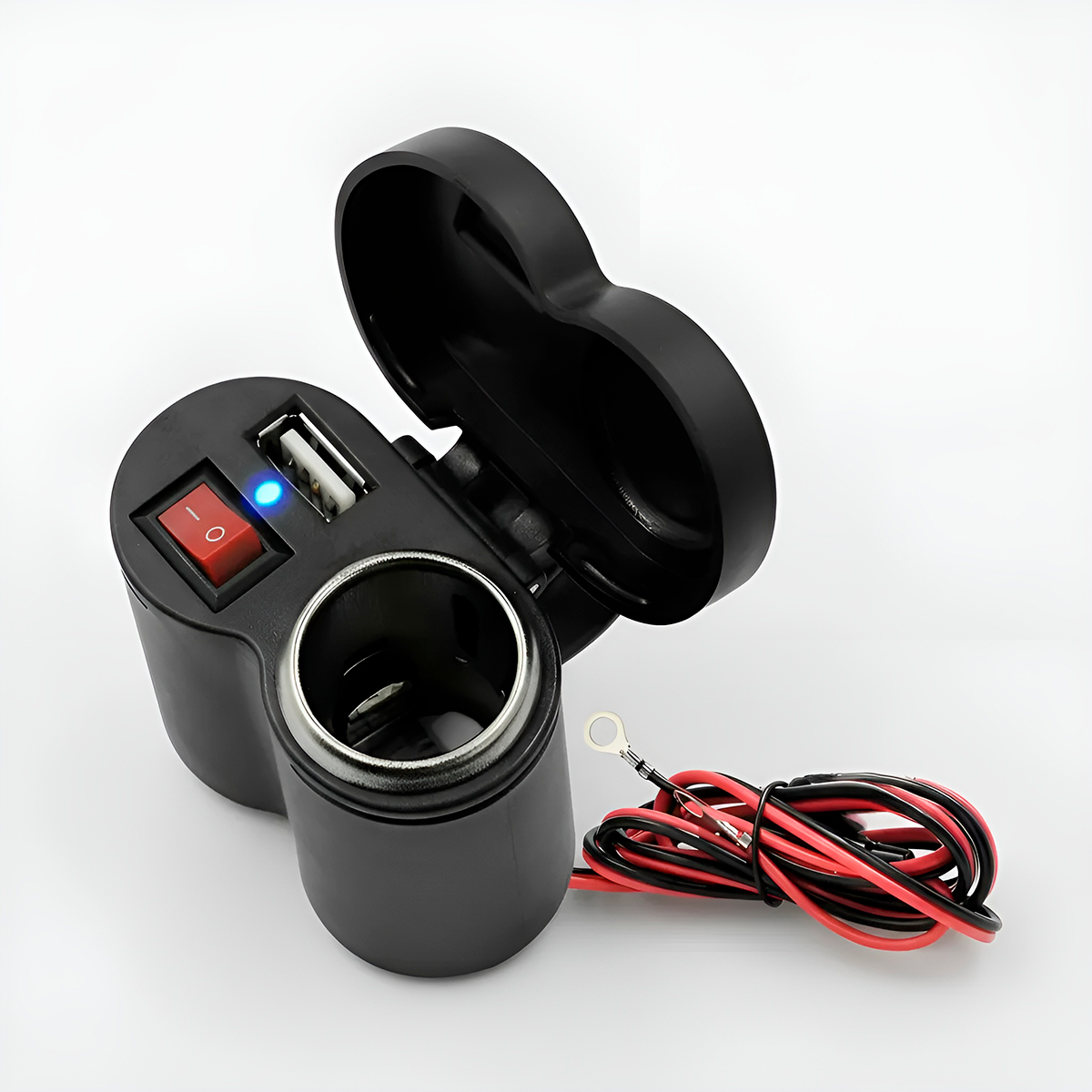 Dê um upgrade na sua moto e tenha energia sempre à mão! Asolução definitiva para manter seus dispositivos eletrônicos carregados e garantir praticidade em todas as suas viagens. -A saída de 12V e a tecnologia de carregamento garantem uma carga eficiente e segura, protegendo seus aparelhos de sobrecargas ou curtos-circuitos. -Além da porta USB, este produto conta com uma entrada para acendedor de cigarro. -A tomada é projetada para ser instalada de forma fácil no guidão ou em outro local estratégico da sua moto. Especificações Técnicas: – Material: ABS/Componentes elétricos/Metal – Dimensões Aprox.: 6cm (LARGURA) x 3,5cm (PROFUNDIDADE) x 5,8cm (ALTURA) – Cor: Preto – Voltagem: 12v – Saída: 5V – Corrente: 2A – Comprimento do cabo: 1,3m -Chave liga/desliga. -Função isqueiro e carregador USB. -Fusível de proteção. Itens Inclusos: – 01x Tomada USB